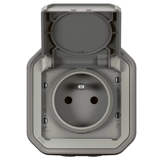 Gniazdo pojedyncze z uziemieniem 2P+Z, zaciski automatyczne, komplet natynkowy 16 A - 250 V~- szare, NOWE PLEXO 55 o numerze katalogowym   069731L w kategorii Gniazda instalacyjne>Gniazda natynkowe. Produkt wyprodukowany przez markę LEGRAND, seria NOWE PLEXO55.