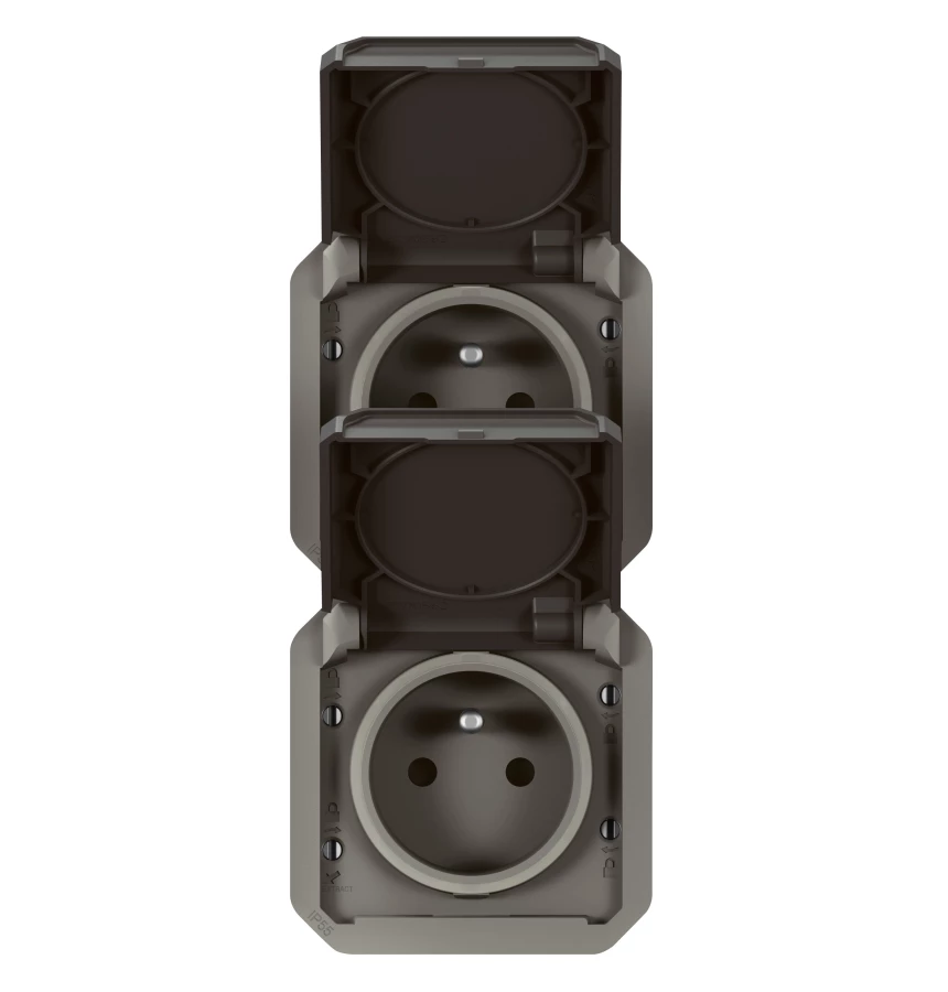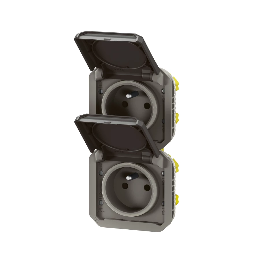 Gniazdo podwójne z uziemieniem 2x2P+Z, pioNOWE, mechanizm 16A-250 V~- antracyt, NOWE PLEXO 55 o numerze katalogowym   069843L w kategorii Gniazda podtynkowe>Gniazda natynkowe. Produkt wyprodukowany przez markę LEGRAND, seria NOWE PLEXO55.