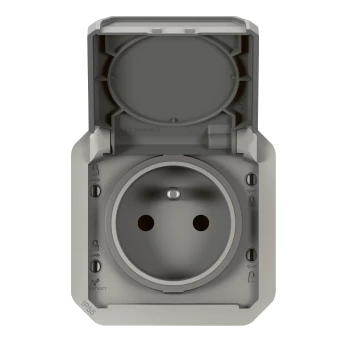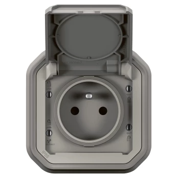 Simon 54 Gniazdo bryzgoszczelne z/u IP44 z klapką transparentną antracyt DGZ1BZ.01/48A