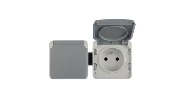 PLEXO55 MECHANIZM SZARY GNIAZDO 1X Z/U Z KLAPKĄ Z PRZESŁONAMI IP55 IK07 ZACISKI ŚRUBOWE 16A 250V