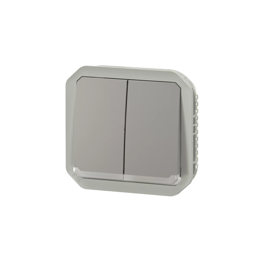 NOWE PLEXO 55 Łącznik podwójny/przycisk podwójny z podświetlanym mechanizmem 10 AX - 250 V AC szary 069526L