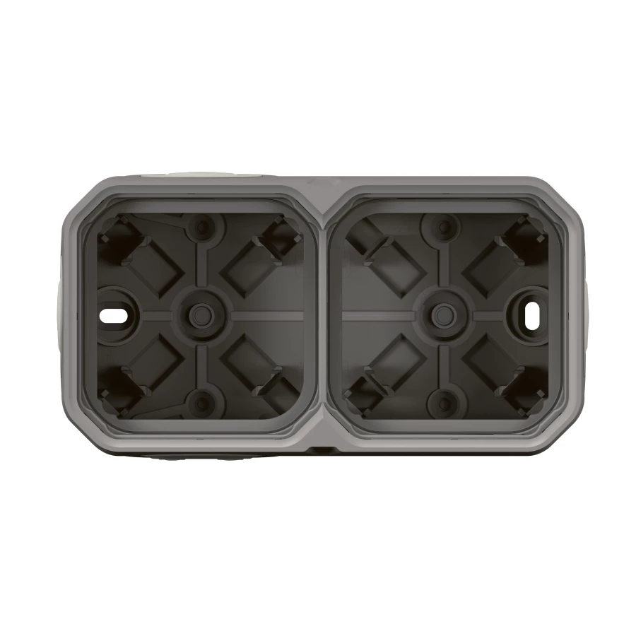 Puszka natynkowa podwójna z przepustem membranowym - szara, NOWE PLEXO 55 o numerze katalogowym   069672L w kategorii Puszki instalacyjne>Puszki natynkowe. Produkt wyprodukowany przez markę LEGRAND, seria NOWE PLEXO55.