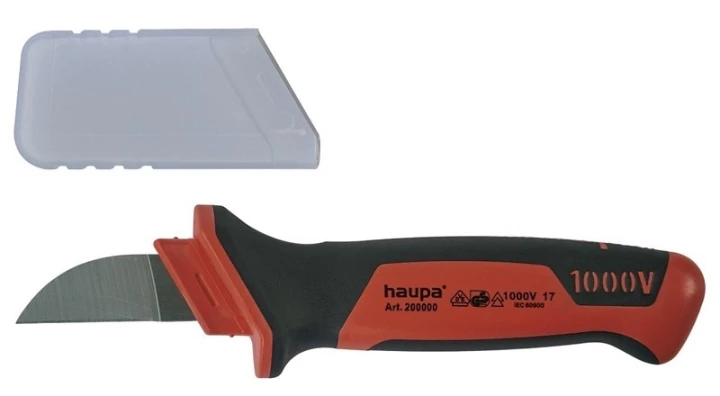 Nóż do przewodów VDE o numerze katalogowym 200000 w kategorii Nożyce do cięcia kabli i przewodów, Narzędzia do cięcia kabli i przewodów. Produkt wyprodukowany przez markę HAUPA.