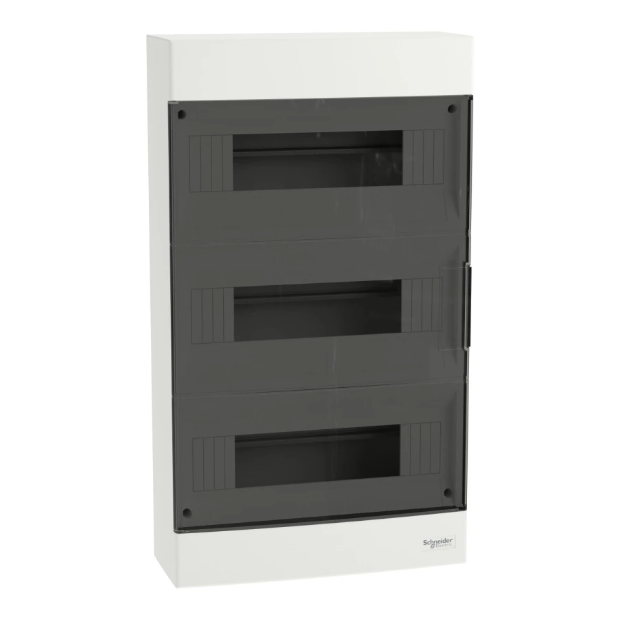 Obudowa natynkowa, Easy9 EU IP40 EZ9EU-3-12-NT-T drzwi transparentne 3 rzędy 12modułów/rząd o numerze katalogowym   EZ9EUC312 w kategorii Rozdzielnice i obudowy>Tworzywowe natynkowe. Produkt wyprodukowany przez markę SCHNEIDER ELECTRIC, seria OBUDOWY EASY9 EU.