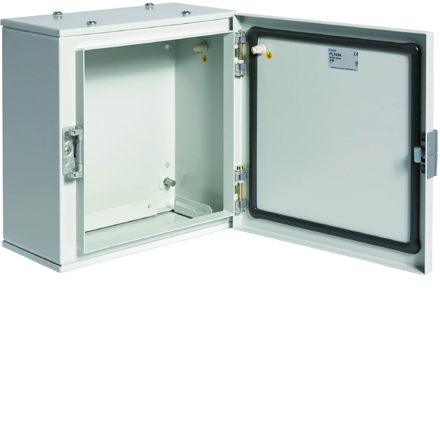 Obudowa stalowa 300x300x160 mm, IP65, drzwi stalowe pełne o numerze katalogowym FL103A w kategorii Pozostałe, Niesklasyfikowane. Produkt wyprodukowany przez markę HAGER, seria Orion+.