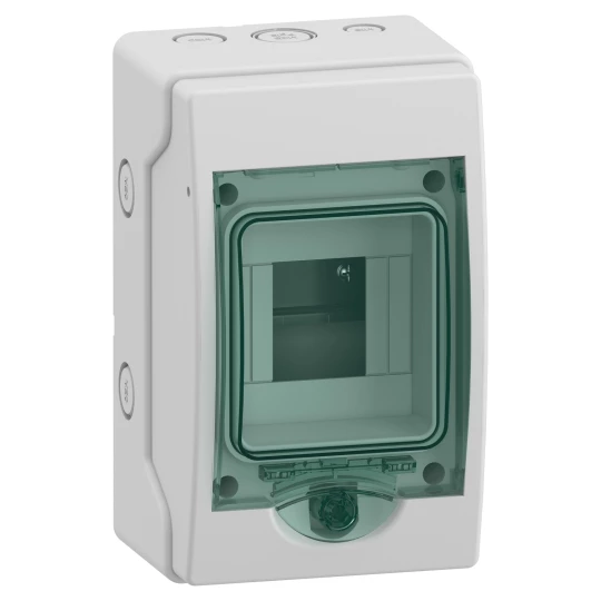 Obudowa natynkowa Mini Mureva (dawna Kaedra) IP65 mMRV-1-4-NT-T drzwi transparentne 1 rząd 4 moduły/rząd o numerze katalogowym   13441 w kategorii Rozdzielnice i obudowy>Tworzywowe natynkowe. Produkt wyprodukowany przez markę SCHNEIDER ELECTRIC.