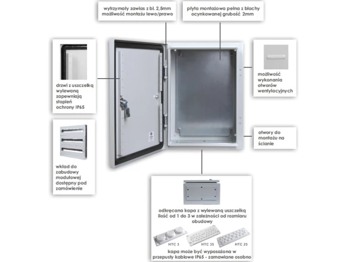 Obudowa n/t z płytą montaż PSH 606020 PROFIT 600x600x200 IP65 IK10 RAL7035 zamek herm.-D5