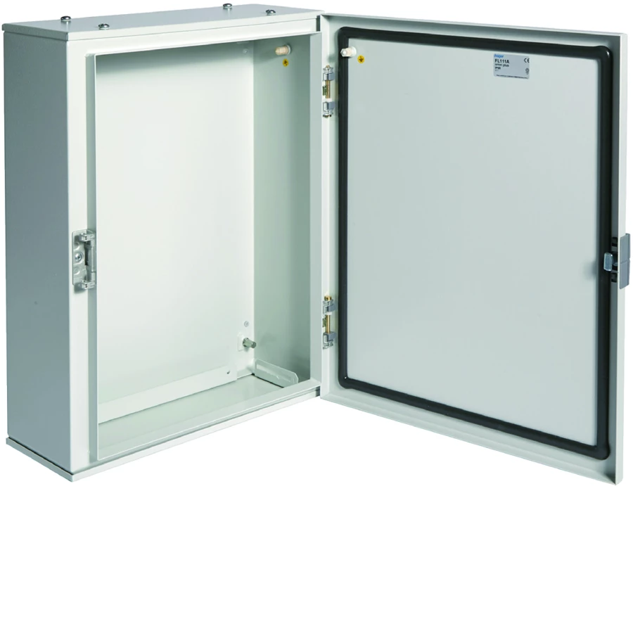 Obudowa stalowa 500x400x160 mm, IP65, drzwi stalowe pełne o numerze katalogowym FL111A w kategorii Pozostałe, Niesklasyfikowane. Produkt wyprodukowany przez markę HAGER, seria Orion+.