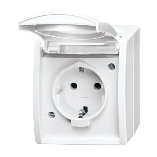 OCEAN BIAŁY ALPEJSKI GNIAZDO 1X SCHUKO Z KLAPKĄ ZACISKI SPRĘZYNOWE 16A 250V