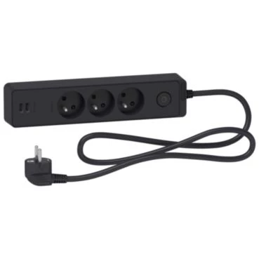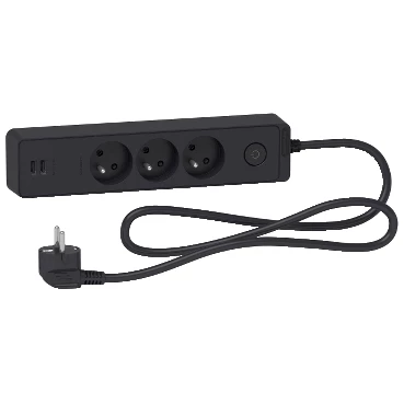 Odace Przedłużacz 3 gniazdowy z łącznikiem 2x USB, 1,5m antracyt ST933U1B
