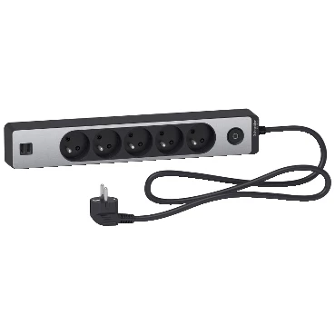 Odace Przedłużacz 5 gniazdowy z łącznikiem 2x USB, 1,5m antracyt+szczotkowane aluminium ST935U1BA