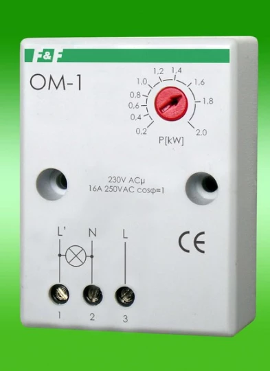 Ogranicznik poboru mocy OM-1 regulacja obciążenia 200-2000VA , I=16A , o numerze katalogowym OM-1 w kategorii Przekaźniki - pozostałe, Przekaźniki. Produkt wyprodukowany przez markę F&F.