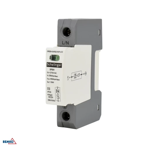OGRANICZNIK PRZEPIĘĆ 1P 20kA(8/20) KLASA T2 (C) SCHELINGER A51-SPD01-1P-C