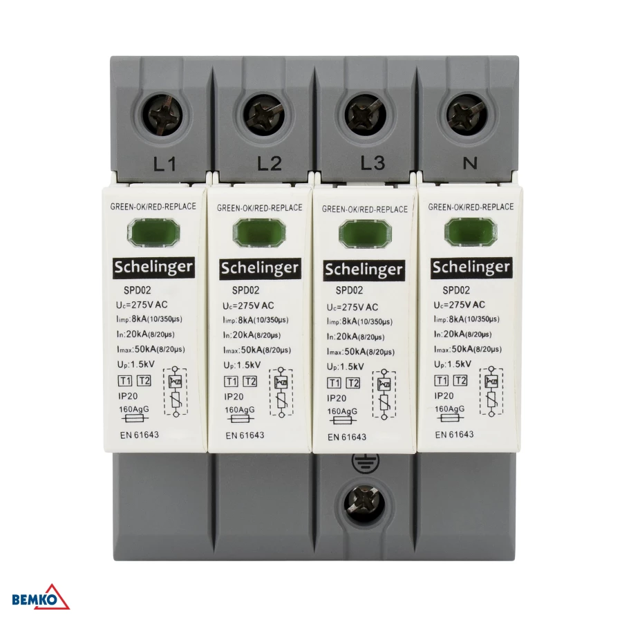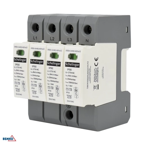 OGRANICZNIK PRZEPIĘĆ 4P 8kA(10/350) KLASA T1+T2 (B+C) SCHELINGER A51-SPD02-4P-B+C