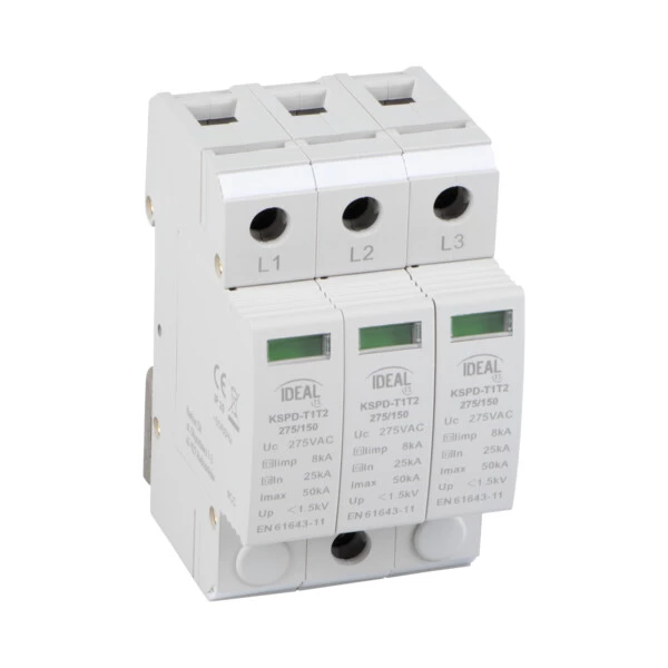 Ogranicznik przepięć KSPD-T1+T2 275/150 3P o numerze katalogowym   36315 w kategorii Ograniczniki przepięć>Ograniczniki przepięć typ 1+2. Produkt wyprodukowany przez markę IDEAL.