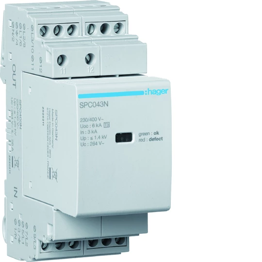 Ogranicznik przepięć warystorowy T3 4P sieć TN-S In=3kA Up1, 4kV styk o numerze katalogowym SPC403N w kategorii Pozostałe, Niesklasyfikowane., seria SPD.