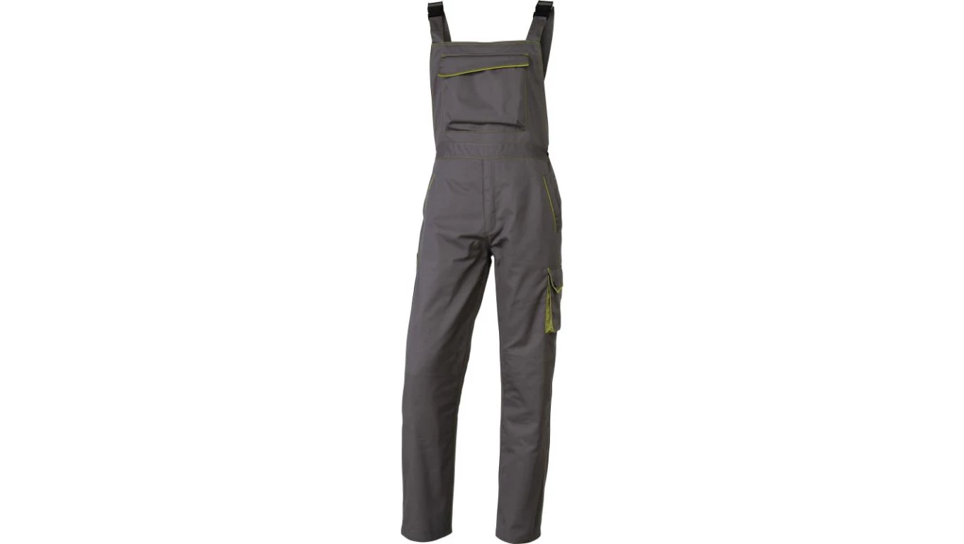 Ogrodniczki panostyle z poliestru (65%) i bawełny (35%), 235 g/m2 szaro-zielony M o numerze katalogowym M6SALGRTM w kategorii Bluzy, kurtki i spodnie robocze, Odzież robocza. Produkt wyprodukowany przez markę DELTA PLUS, seria M6SAL.