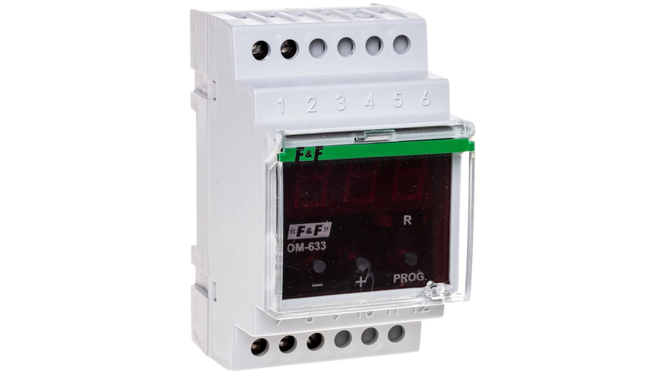 Ogranicznik z funkcją przekaźnika napięciowego, LCD, pomiar do 10kW, montaż na szynie DIN, OM-633 o numerze katalogowym OM-633 w kategorii Przekaźniki - pozostałe, Przekaźniki. Produkt wyprodukowany przez markę F&F.