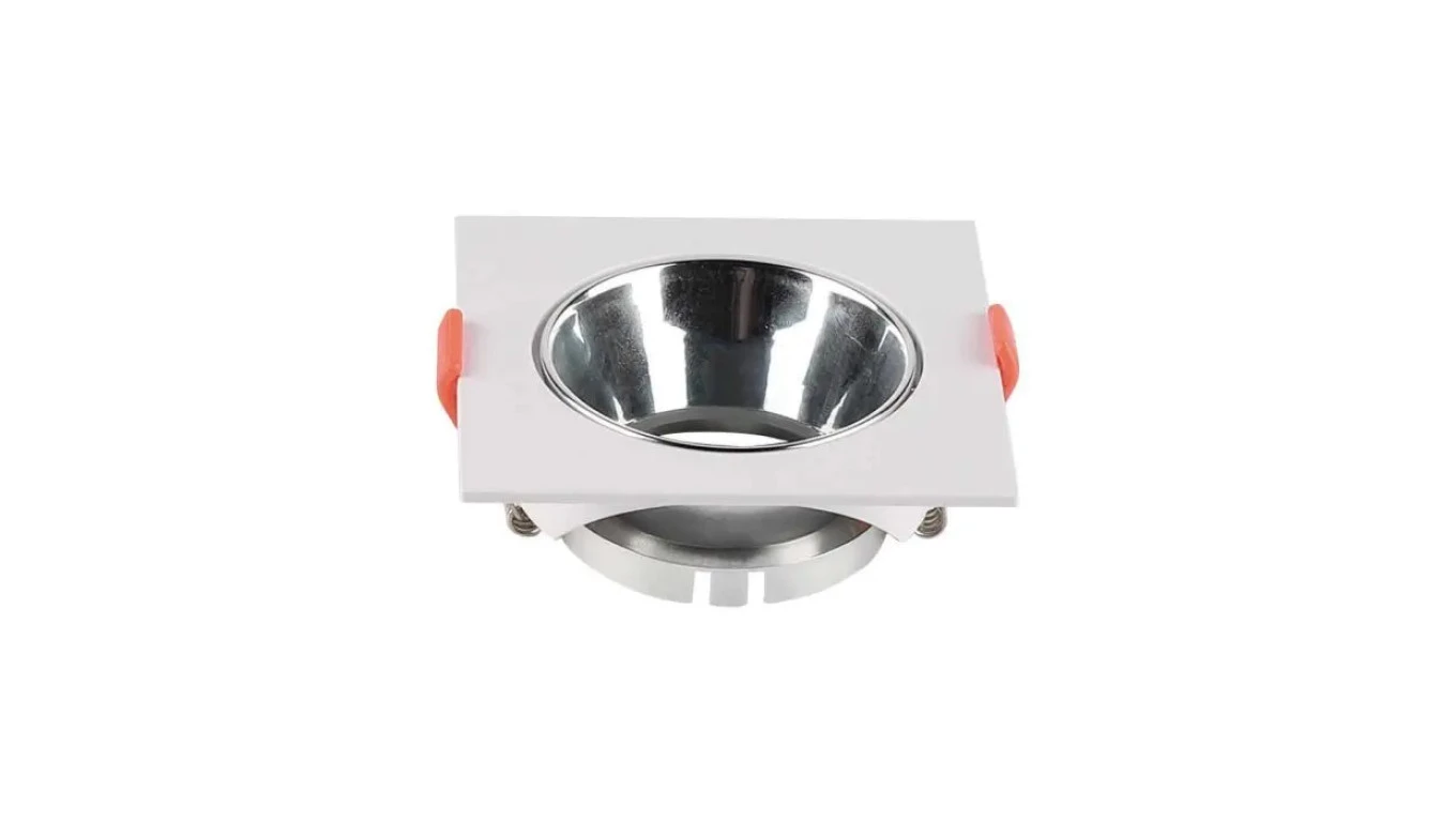 OPRAWA WPUSZCZANA SPOT / TRZONEK:GU10 / KWADRATOWA / BIAŁA RAMKA I CHROMOWANY REFLEKTOR