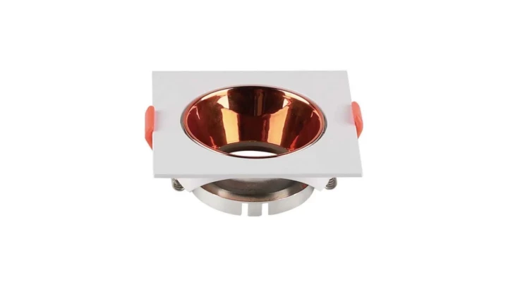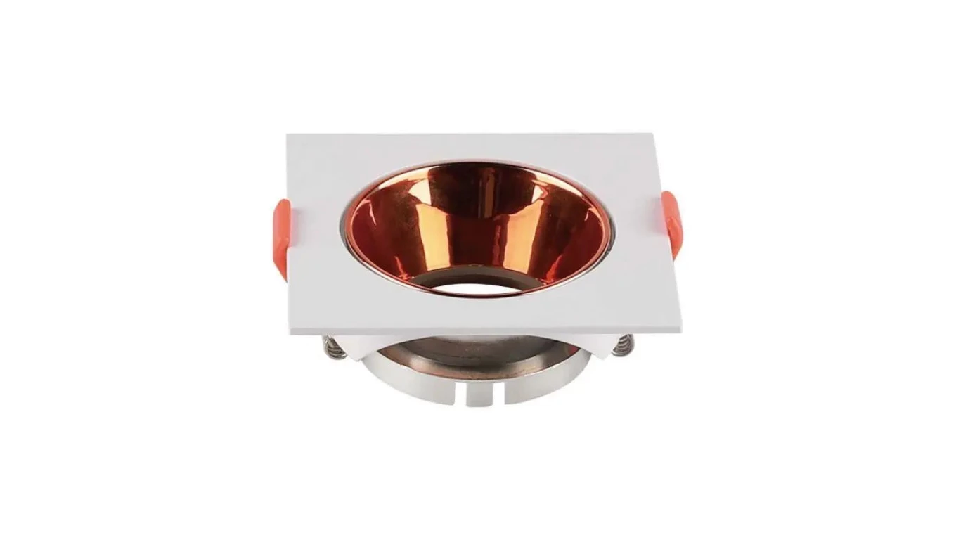 OPRAWA WPUSZCZANA SPOT / TRZONEK:GU10 / KWADRATOWA / BIAŁA RAMKA I ZŁOTY RÓŻ REFLEKTOR