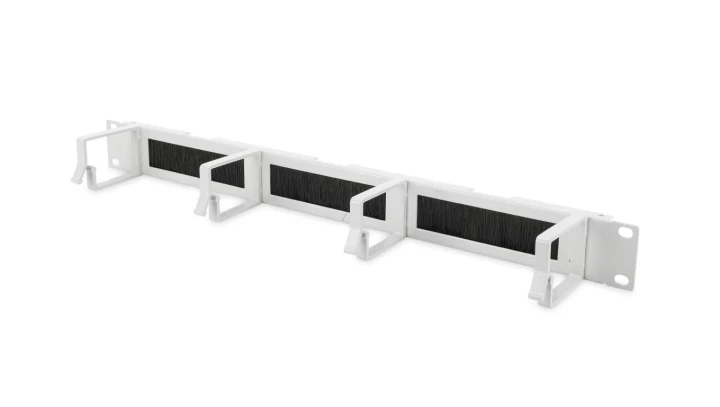 Organizator kablowy ze szczotką 19 1U 4x uchwyty aluminiowe 44x72mm szary DN-97662