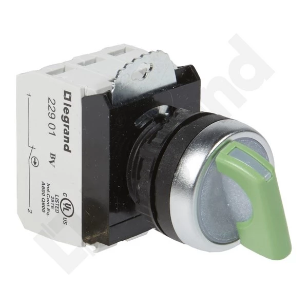 Przełącznik 2 położeniowy pokrętło 22mm zielony 1Z bez samopowrotu SP22-PL.Z-10-230-LEDAC