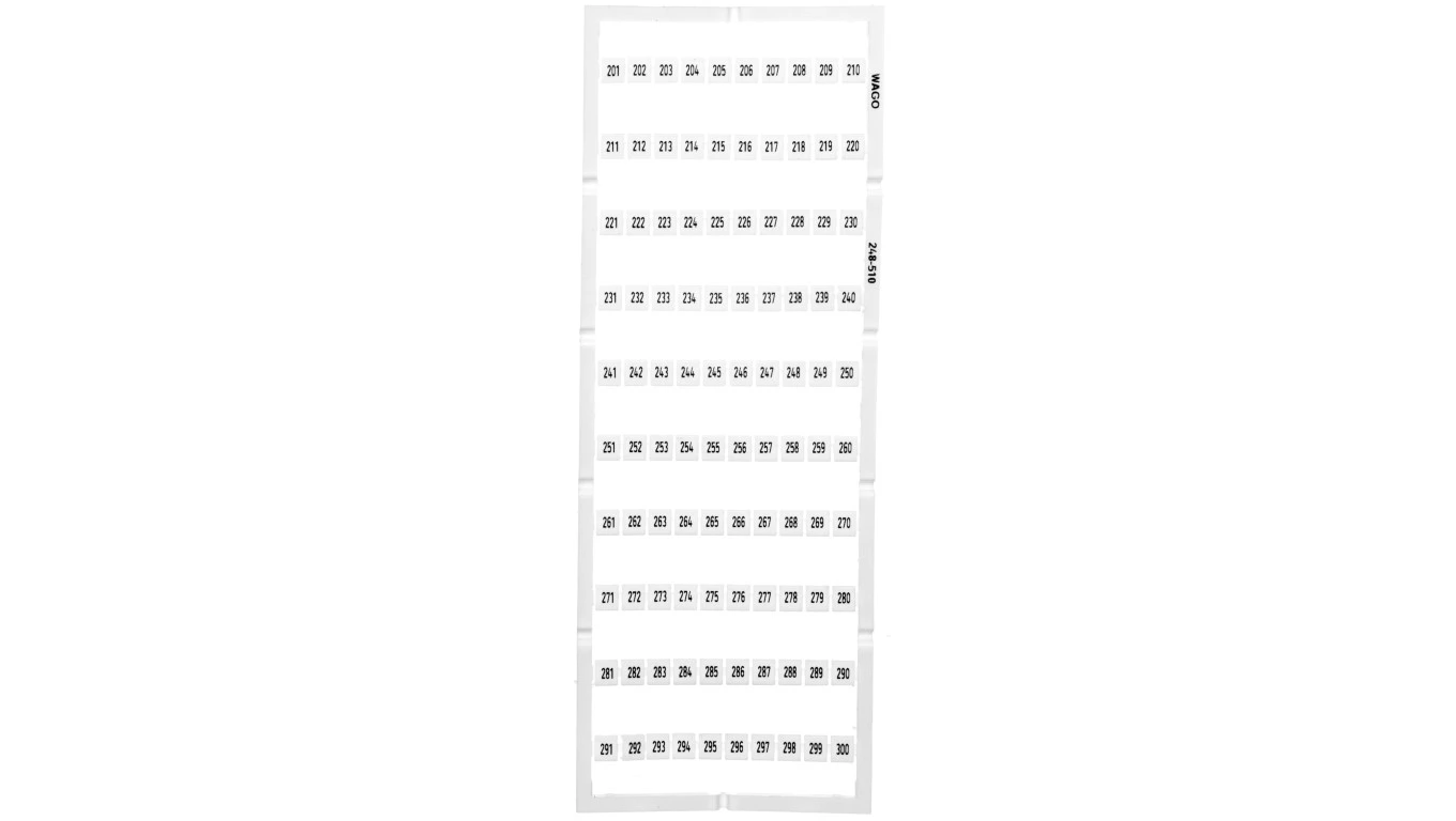 oznaczniki Mini-WSB; jako karta; z nadrukiem; 201 ... 300 (1x); nierozciągalne; nadruk poziomo; do montażu zatrzaskowego; biały