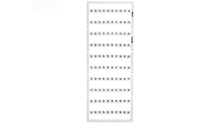 oznaczniki Mini-WSB; jako karta; z nadrukiem; 151 ... 200 (2x); nierozciągalne; nadruk poziomo; do montażu zatrzaskowego; biały
