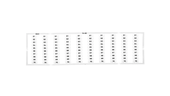 mata oznacznikowa WMB; jako karta; z nadrukiem; 61 ... 70 (10x); z możliwością rozciągnięcia z 5 mm do 5,2 mm; nadruk pionowo; do montażu zatrzaskowego; biały