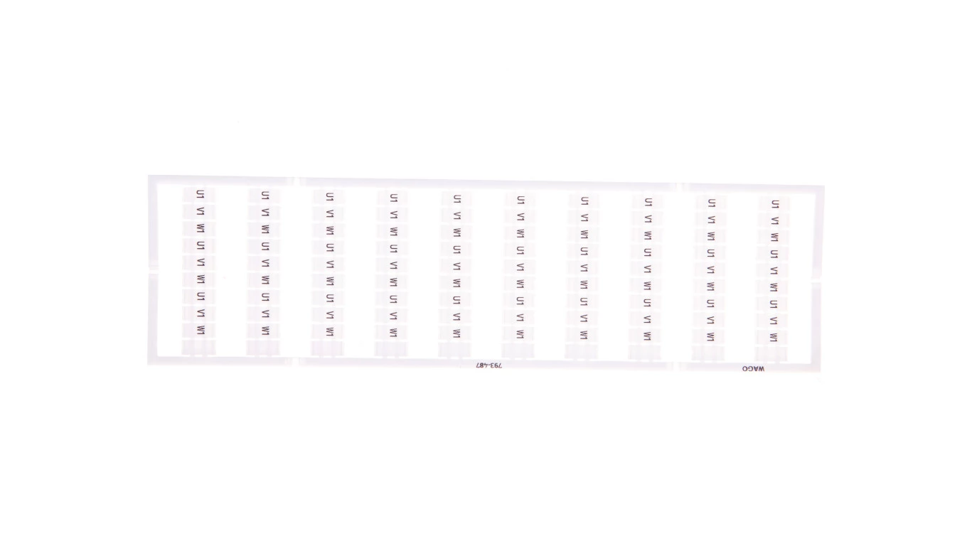 mata oznacznikowa WMB; jako karta; z nadrukiem; U2, V2, W2, U2, V2, W2, U2, V2, W2,... (10x); nierozciągalne; nadruk poziomo; do montażu zatrzaskowego; biały
