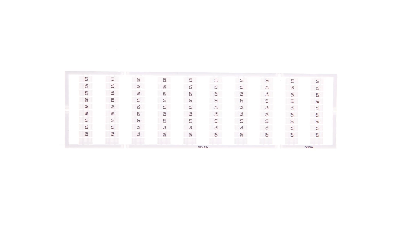 mata oznacznikowa WMB; jako karta; z nadrukiem; U3, V3, W3, U3, V3, W3, U3, V3, W3,... (10x); nierozciągalne; nadruk poziomo; do montażu zatrzaskowego; biały