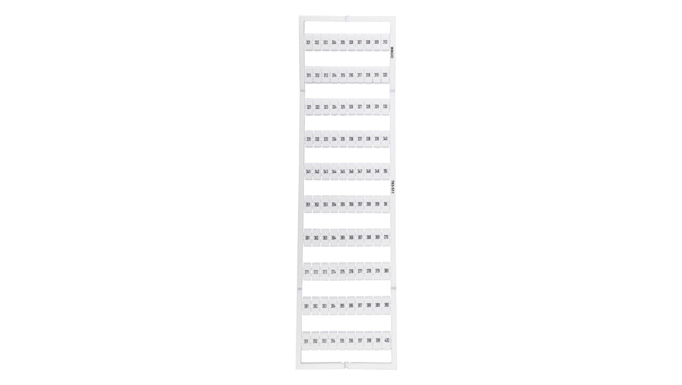 mata oznacznikowa WMB; jako karta; z nadrukiem; 301 ... 400 (1x); nierozciągalne; nadruk poziomo; do montażu zatrzaskowego; biały