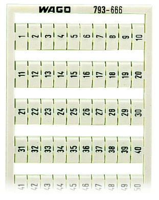 mata oznacznikowa WMB; jako karta; z nadrukiem; 1 ... 50 (2x); nierozciągalne; nadruk pionowo; do montażu zatrzaskowego; biały