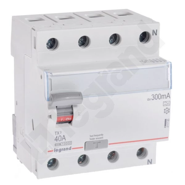Wyłącznik różnicowoprądowy P304 4P 40A 300MA TYP A TX3 o numerze katalogowym 411785 w kategorii Wyłączniki różnicowoprądowe typ A, Wyłączniki różnicowoprądowe. Produkt wyprodukowany przez markę LEGRAND, seria P30TX.