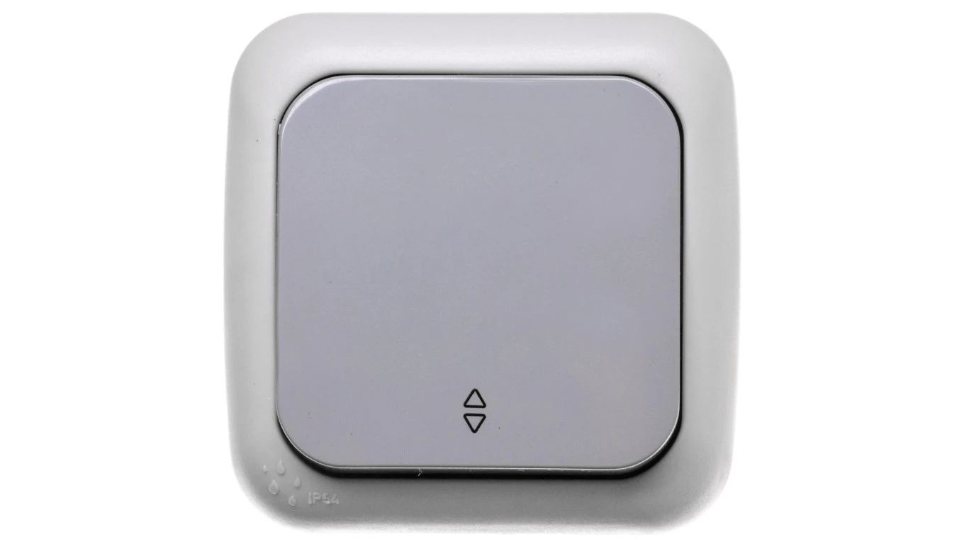 Łącznik schodowy IP54, szary PALMIYE o numerze katalogowym 90555504 w kategorii Przyciski natynkowe schodowe, Przyciski schodowe. Produkt wyprodukowany przez markę PANASONIC, seria PALMIYE.
