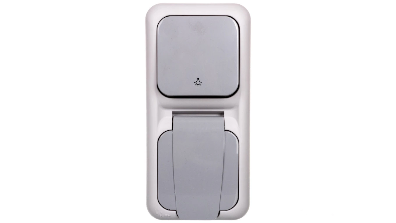 AQUANT SZARY ŁĄCZNIK NT UNIWERSALNY + GNIAZDO 2X Z/U Z KLAPKĄ IP55 PIONOWE ZACISKI ŚRUBOWE