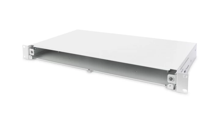Panel krosowy FO bez płyty czołowej 19 1U, wysuwany, dławnica PG13.5 i PG16, opaski/uchwyty, szary DN-96200-QL
