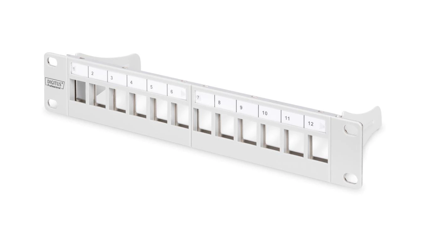 Panel krosowy modularny 10 12x keystone, ekranowany, 1U, szary, prowadnica kabli, pola opisowe DN-91419