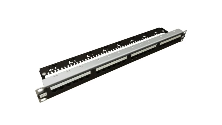 PATCH PANEL UTP KAT.6, 24 PORTY LSA Z PÓŁKĄ 1U ZWIĘKSZONY ZAPAS TRANSMISYJNY ALANTEC