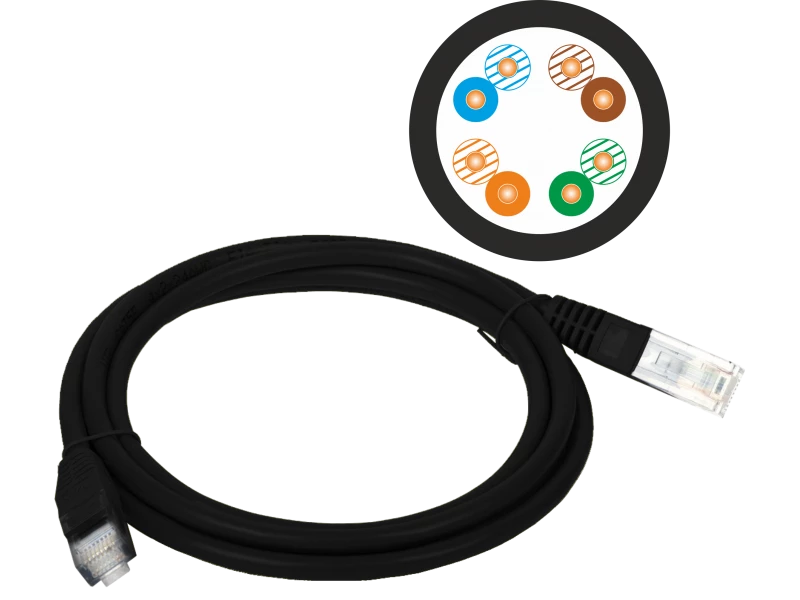 Patchcord U/UTP kat.5e PVC 5.0m czarny o numerze katalogowym KKU5CZA5 w kategorii Kable i przewody krosowe, Infrastruktura IT. Produkt wyprodukowany przez markę ALANTEC, seria U/UTP.
