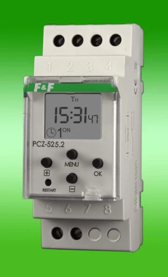 Zegar sterujący programowalny PCZ-525 astronomiczny z przerwą nocną, NFC, styki: 1P, I=16A, 24÷264V AC/DC, 2 moduły o numerze katalogowym PCZ-525.3 w kategorii Zegary sterujące, Aparatura sterująca. Produkt wyprodukowany przez markę F&F.