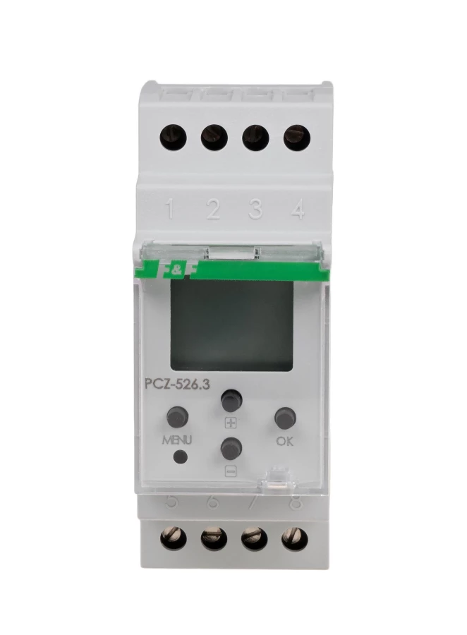 Zegar sterujący programowalny, astronomiczny z programowalną przerwą nocną, 2-kanałowy PCZ-526.2 o numerze katalogowym PCZ-526.2 w kategorii Przekaźniki czasowe, Przekaźniki. Produkt wyprodukowany przez markę F&F.