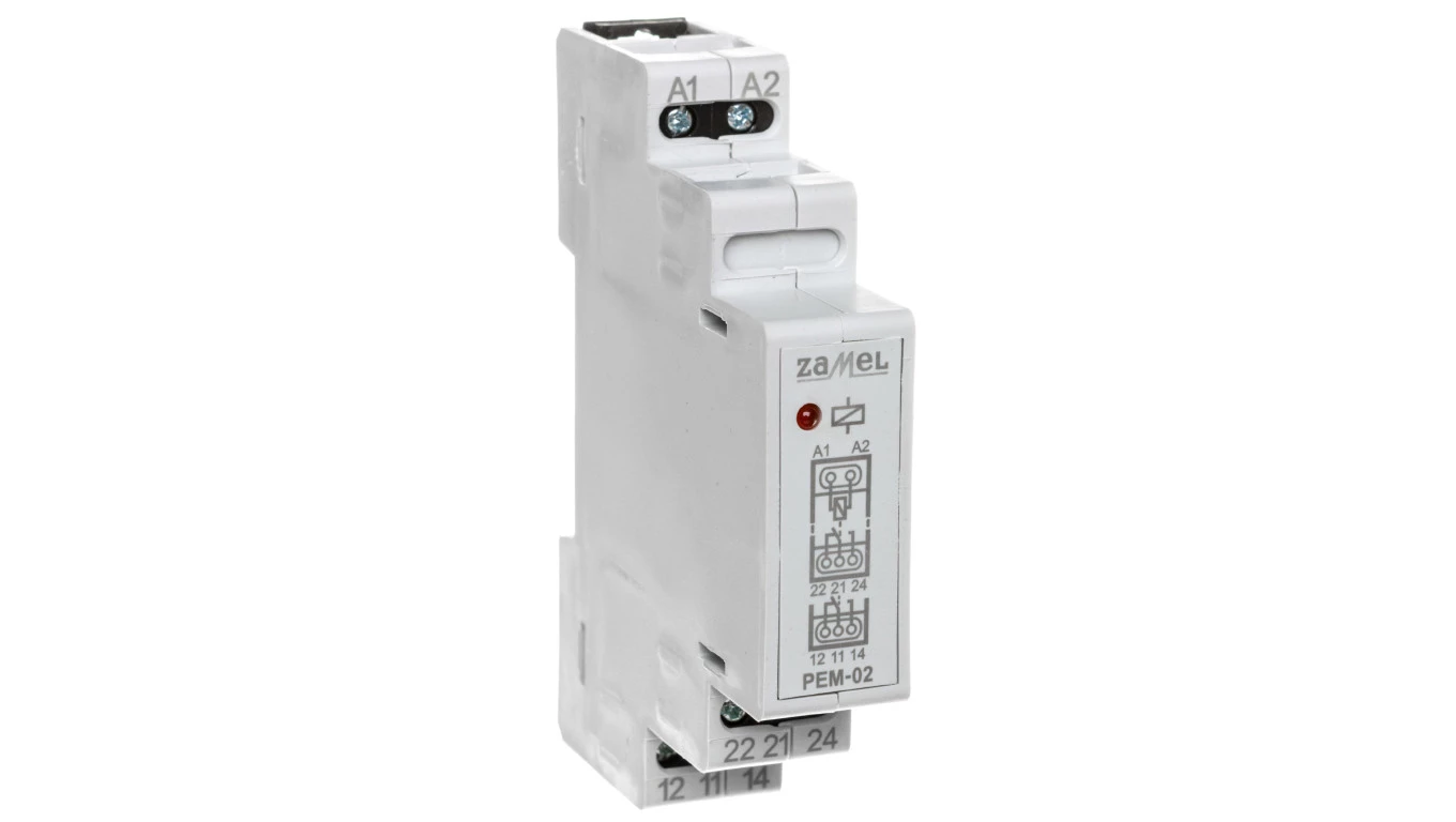 Przekaźnik elektromagnetyczny 24V AC/DC 2x8A Typ: PEM-02/024 o numerze katalogowym EXT10000096 w kategorii Przekaźniki instalacyjne, Przekaźniki. Produkt wyprodukowany przez markę ZAMEL, seria EXTA.