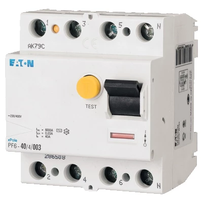 Wyłącznik różnicowoprądowy 6kA PF6-25/4/003-A o numerze katalogowym 112930 w kategorii Wyłączniki różnicowoprądowe typ A, Wyłączniki różnicowoprądowe. Produkt wyprodukowany przez markę EATON, seria PF6.