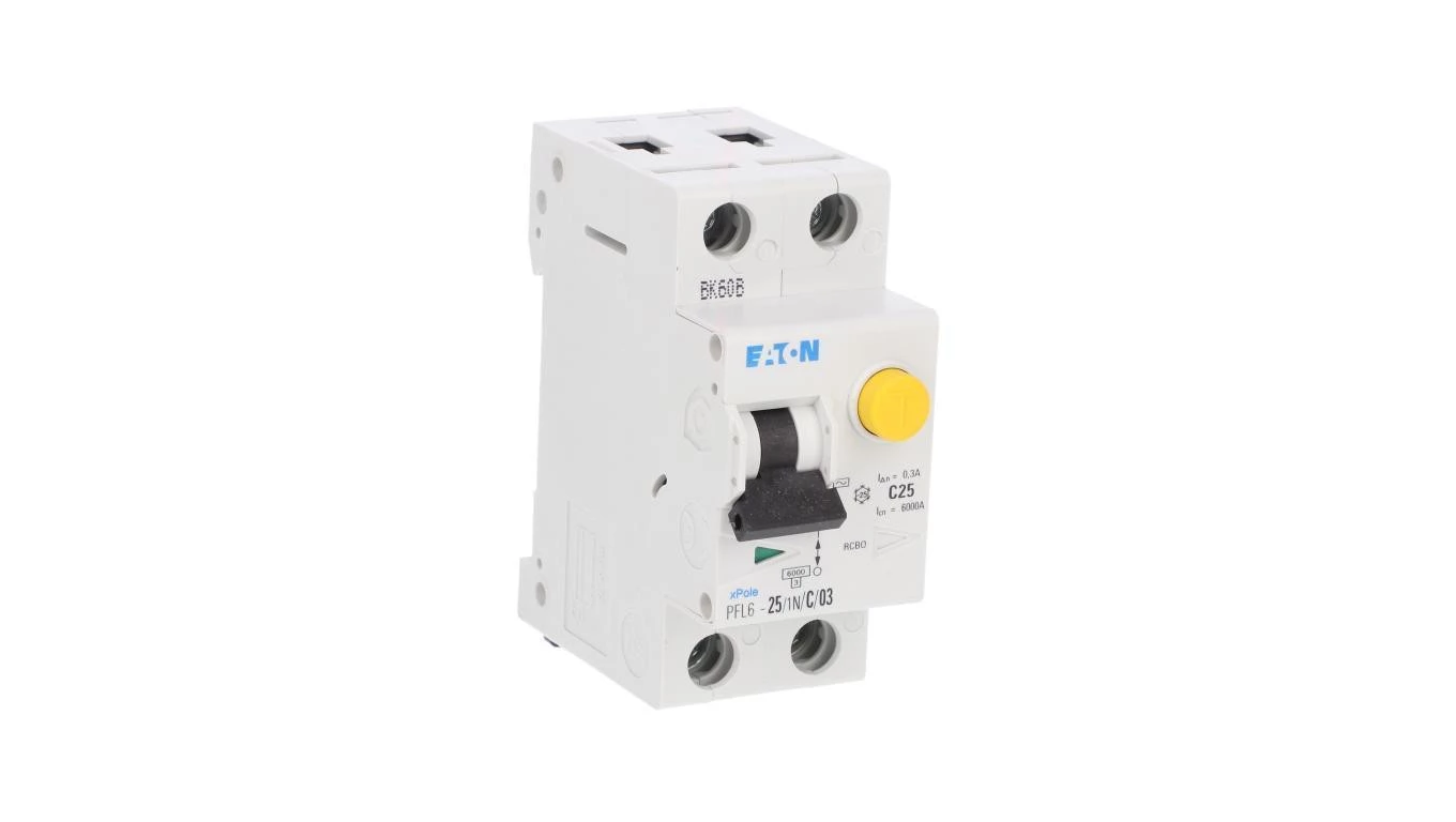 Wyłącznik kombinowany 6kA PFL6-25/1N/C/3 typ AC o numerze katalogowym 286489 w kategorii Wyłączniki różnicowoprądowe z członem nadprądowym typ AC, Wyłączniki różnicowoprądowe nadprądowe. Produkt wyprodukowany przez markę EATON, seria PFL6.