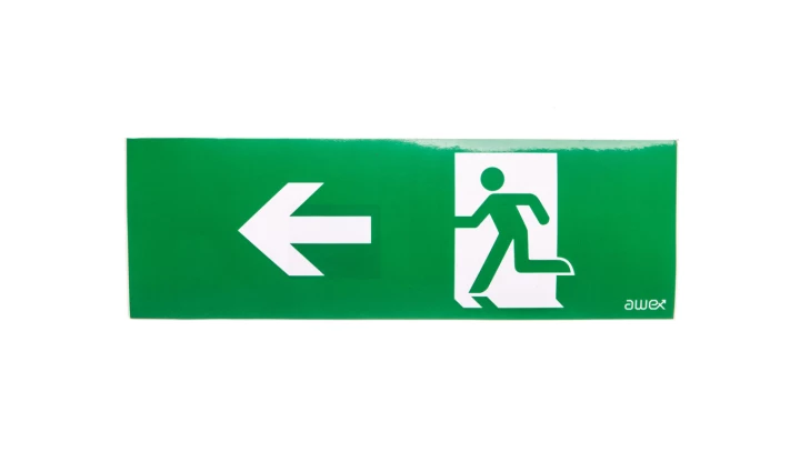 Piktogram KIERUNEK DO WYJŚCIA EWAKUACYJNEGO W LEWO, 100x300mm o numerze katalogowym 5902288930770 w kategorii Piktogramy, Oprawy awaryjne. Produkt wyprodukowany przez markę AWEX.