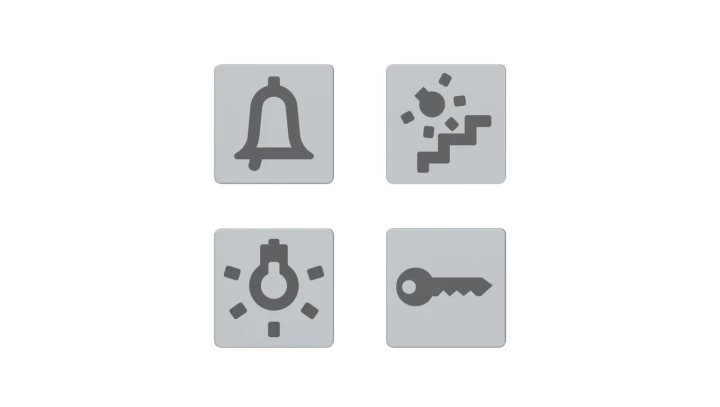 Piktogramy, zestaw soczewek do podświetlania urządzeń sterujących, z różnymi symbolami, np. światła, Dahlia GW35986