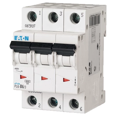 Wyłącznik nadprądowy 6kA PL6-B6/3 o numerze katalogowym 286586 w kategorii Wyłączniki nadprądowe 6kA, Wyłączniki nadprądowe. Produkt wyprodukowany przez markę EATON, seria PL6.