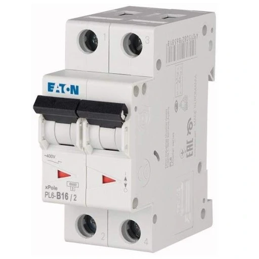 Wyłącznik nadprądowy 6kA PL6-B16/2 o numerze katalogowym 286555 w kategorii Wyłączniki nadprądowe 6kA, Wyłączniki nadprądowe. Produkt wyprodukowany przez markę EATON, seria PL6.