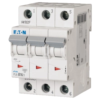 Wyłącznik nadprądowy 6kA PL6-B16/3 o numerze katalogowym 286589 w kategorii Wyłączniki nadprądowe 6kA, Wyłączniki nadprądowe. Produkt wyprodukowany przez markę EATON, seria PL6.